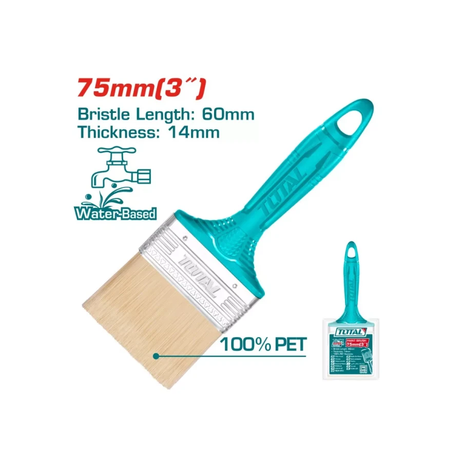кисть малярная total tht840306 - толстая кисть для покраски. щетина каждого инструмента надежно фиксируется металлической лентой. пластиковая ручка снабжена отверстиями для подвешивания.