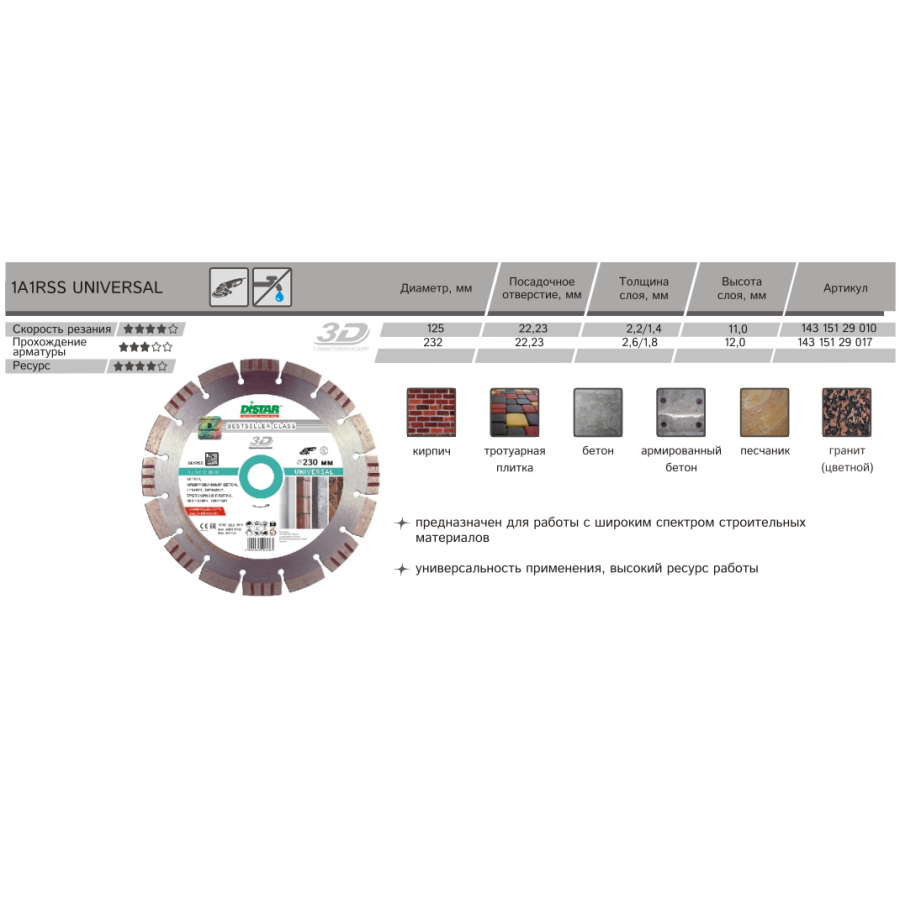 Отличительные черты алмазного отрезного диска 1A1RSS 125 Universal :
