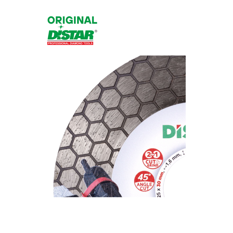 Широкий двухсторонний алмазоносный слой 25 мм армирует корпус, делает его жестким. В то же время алмазоносная связка слоя с рисунком в виде сот делает резку мягкой и высокопроизводительной. Большая площадь создает эффект «опоры», направляя диск строго по прямой.