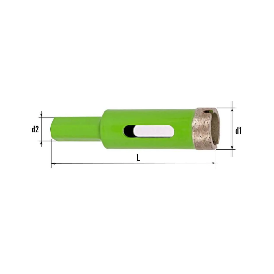 За счет прочного алмазного слоя позволяет достичь максимальной скорости работы и ресурса сверл. При сверлении требуется охлаждение сверла и материала с помощью воды.