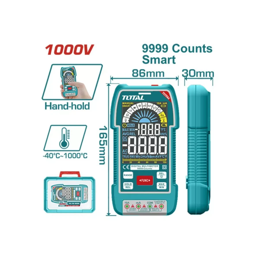 - Функция SMART (напряжение переменного/постоянного тока, сопротивление и непрерывность)