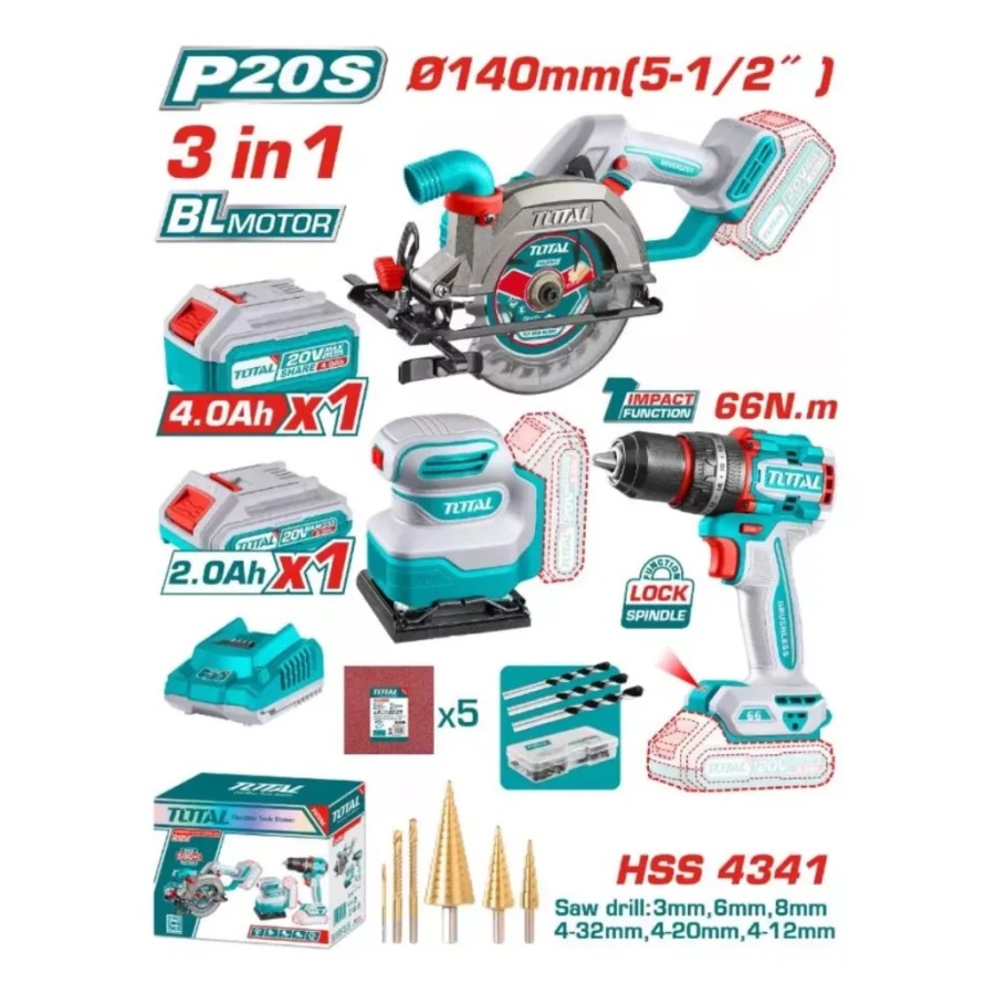 Комбинированный набор: аккумуляторная отвертка, полировальная машина, технический фен Total TOSLI240863