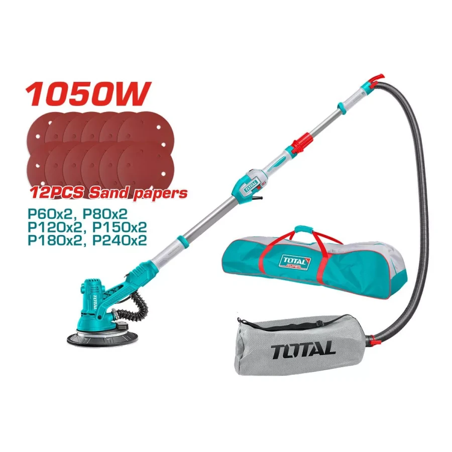 Шлифовальная машина Giraffe от TOTAL с эргономичным дизайном для большего комфорта и гибкости пользователя. Мощный двигатель мощностью 1050 Вт для быстрого и эффективного шлифования стен и потолков. В холщовой сумке TOTAL для безопасной и удобной транспортировки.