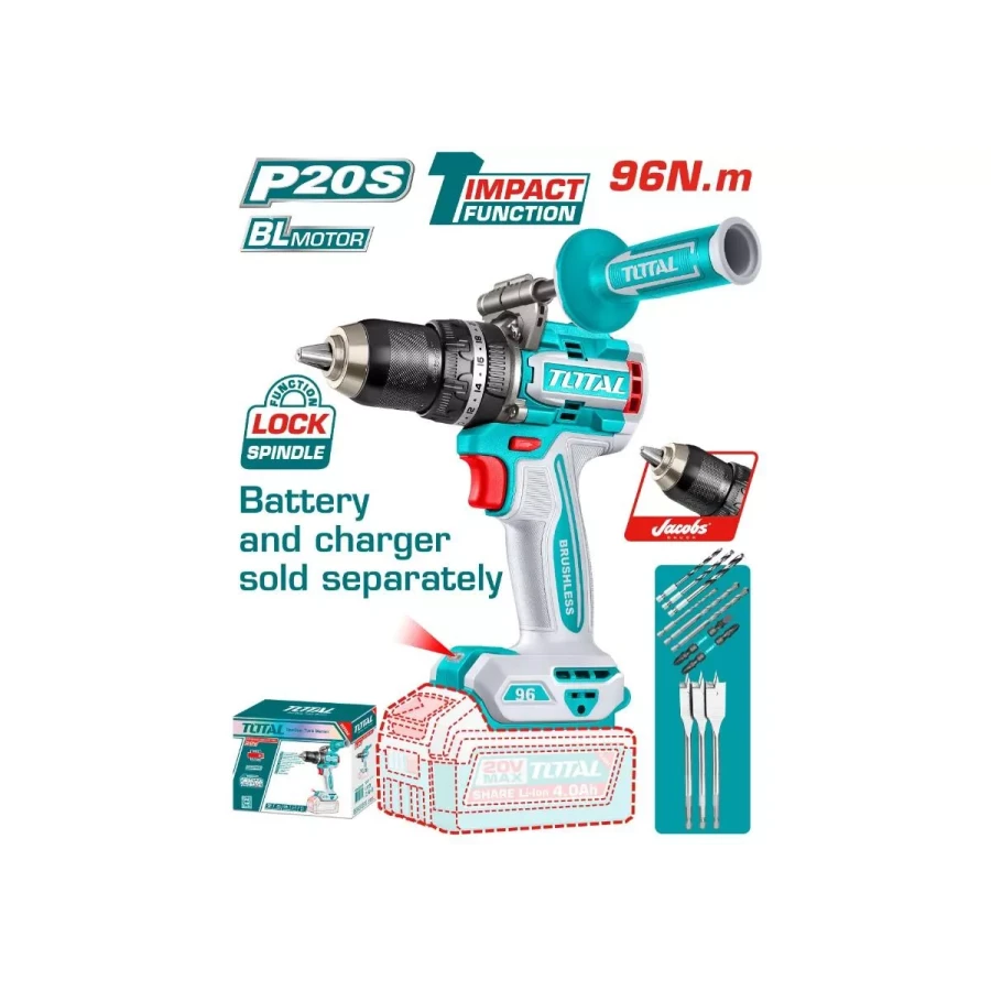бесщеточная аккумуляторная ударная дрель total tidli209685 20в 96нм (TIDLI209685)