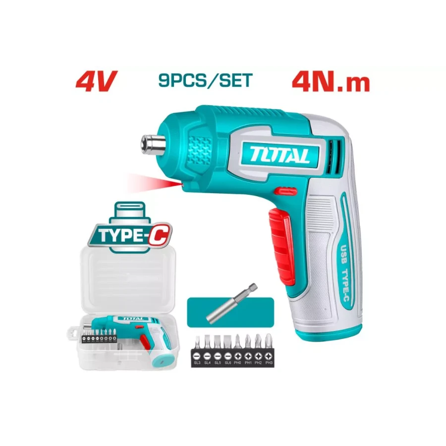 аккумуляторная отвертка 4в, 4нм total tsdli0458